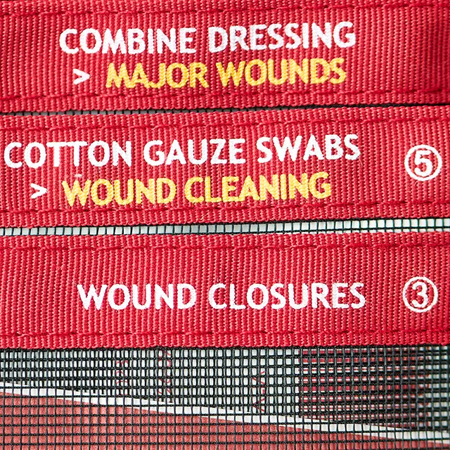 When seconds count, you want to find items fast. The inside of our Kits have colour coded, clearly labelled pockets to help you in an emergency.