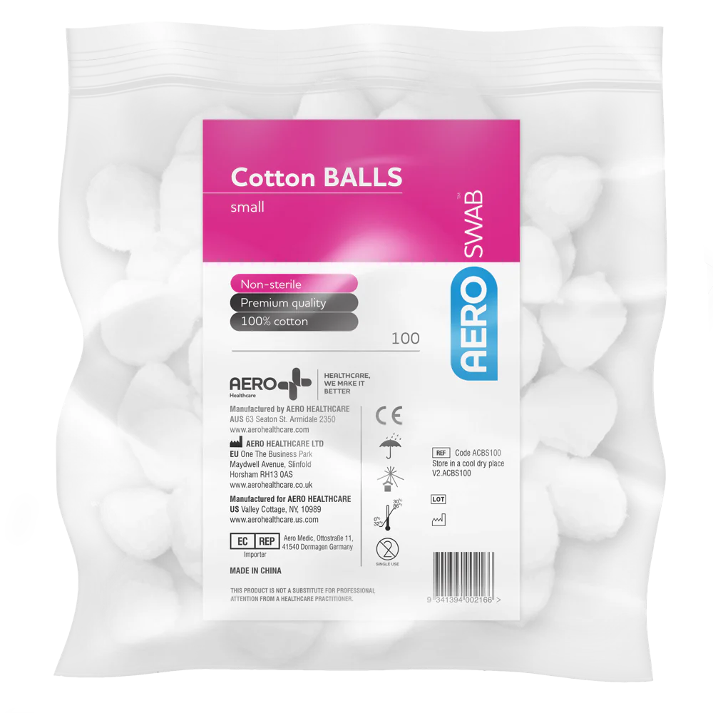 Small Cotton Balls Bag/100 A high quality cotton swab and is ideal for cleansing wounds when used in conjunction with an antiseptic or saline solution.