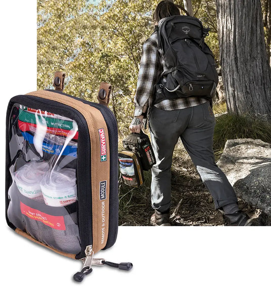 The Remote and Outdoor Module similarly has 2 Smart Bandages, however it's suited for more remote activities as it includes a mini torch, emergency whistle and daylight signal mirror, and does not include a splint.